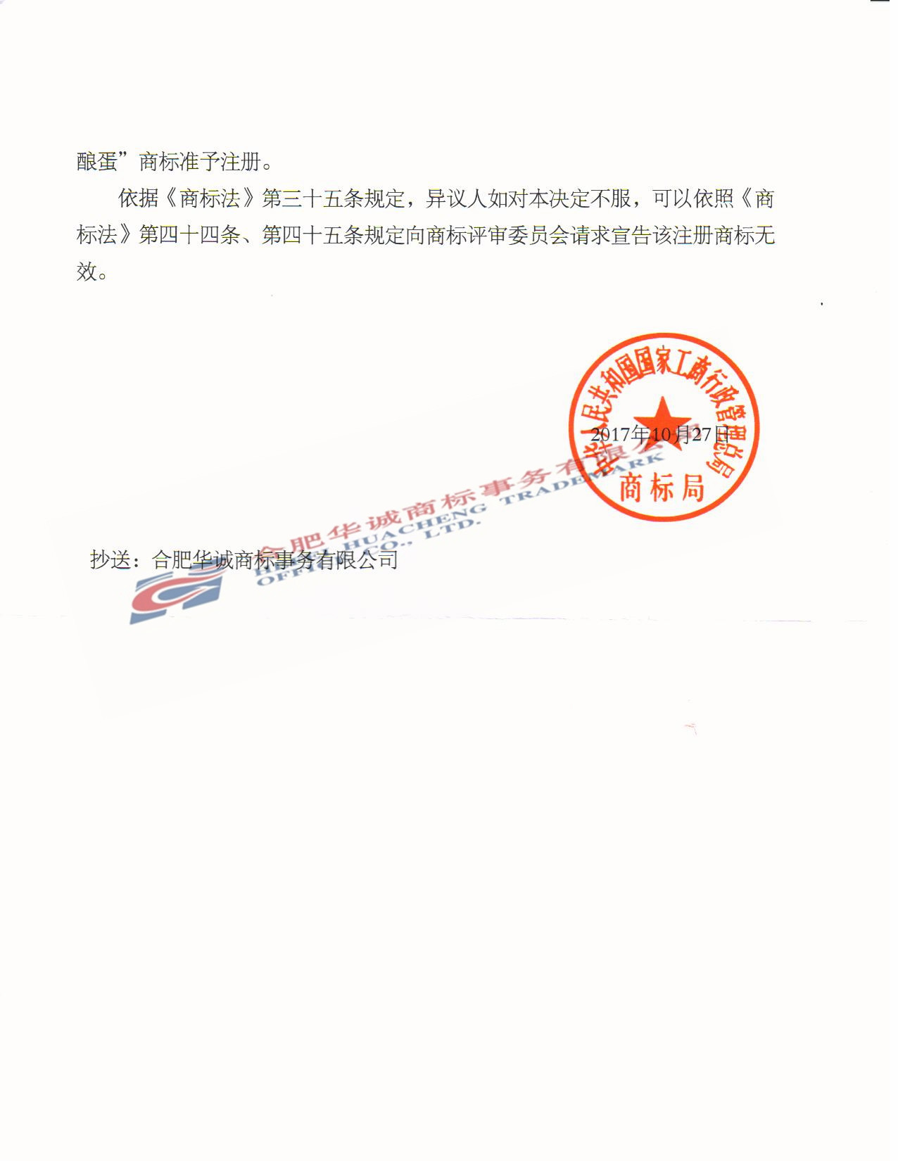“丽挺女王酒酿蛋” 商标准予注册的决定