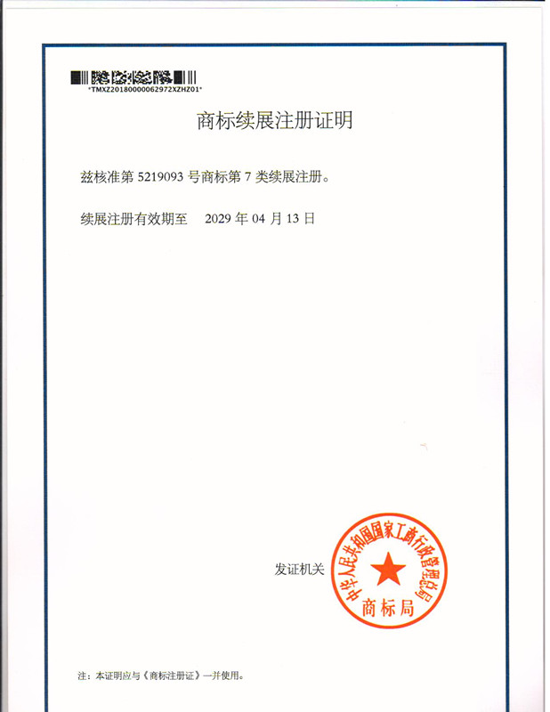 您委托我所代理商标注册申请,第“5219093”7类商标续展注册证明已下达。